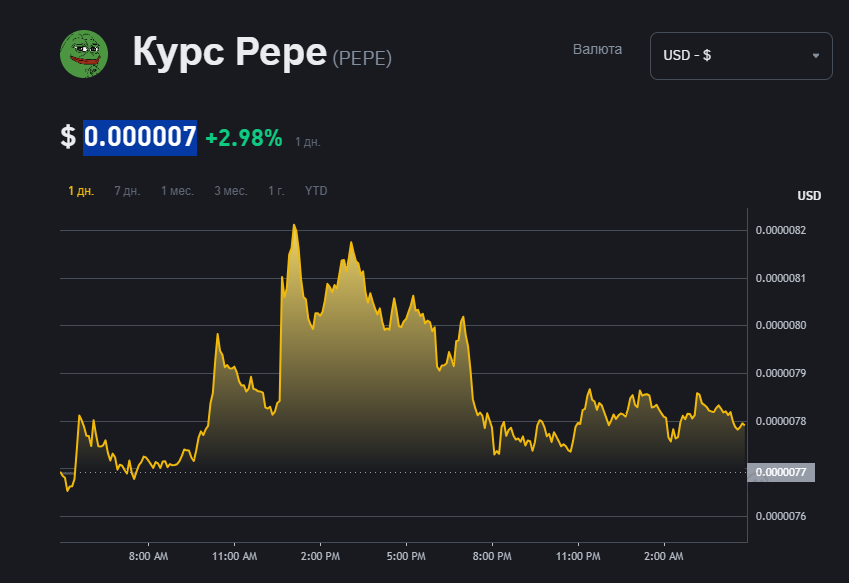 Сейчас капитализация Лягушонка — около 4,2 миллиардов. Стоимость одной монеты — 0.000007 долларов.