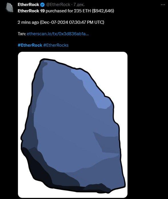В минувшую субботу на криптовалютном рынке произошла примечательная сделка — цифровое изображение камня из коллекции EtherRock было продано за 235 ETH, что эквивалентно 942 тысячам долларов США. Токен под номером 19 стал одной из самых дорогих продаж на рынке NFT за последнее время, демонстрируя, что интерес к цифровым коллекционным предметам сохраняется даже в условиях неоднозначной рыночной ситуации.