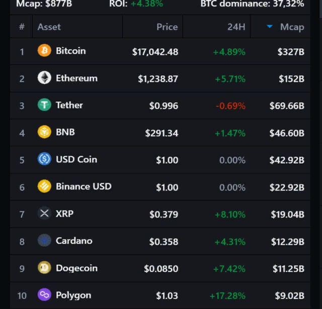 Капитализация крипторынка — $877 млрд, индекс доминирования биткоина — 37,32%.
