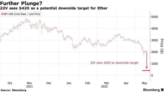 Сегодня крупнейший альткоин торговался выше отметки 2000 долларов, однако аналитик Джон Рок считает, что её стоимость может обвалиться ещё на 80%.