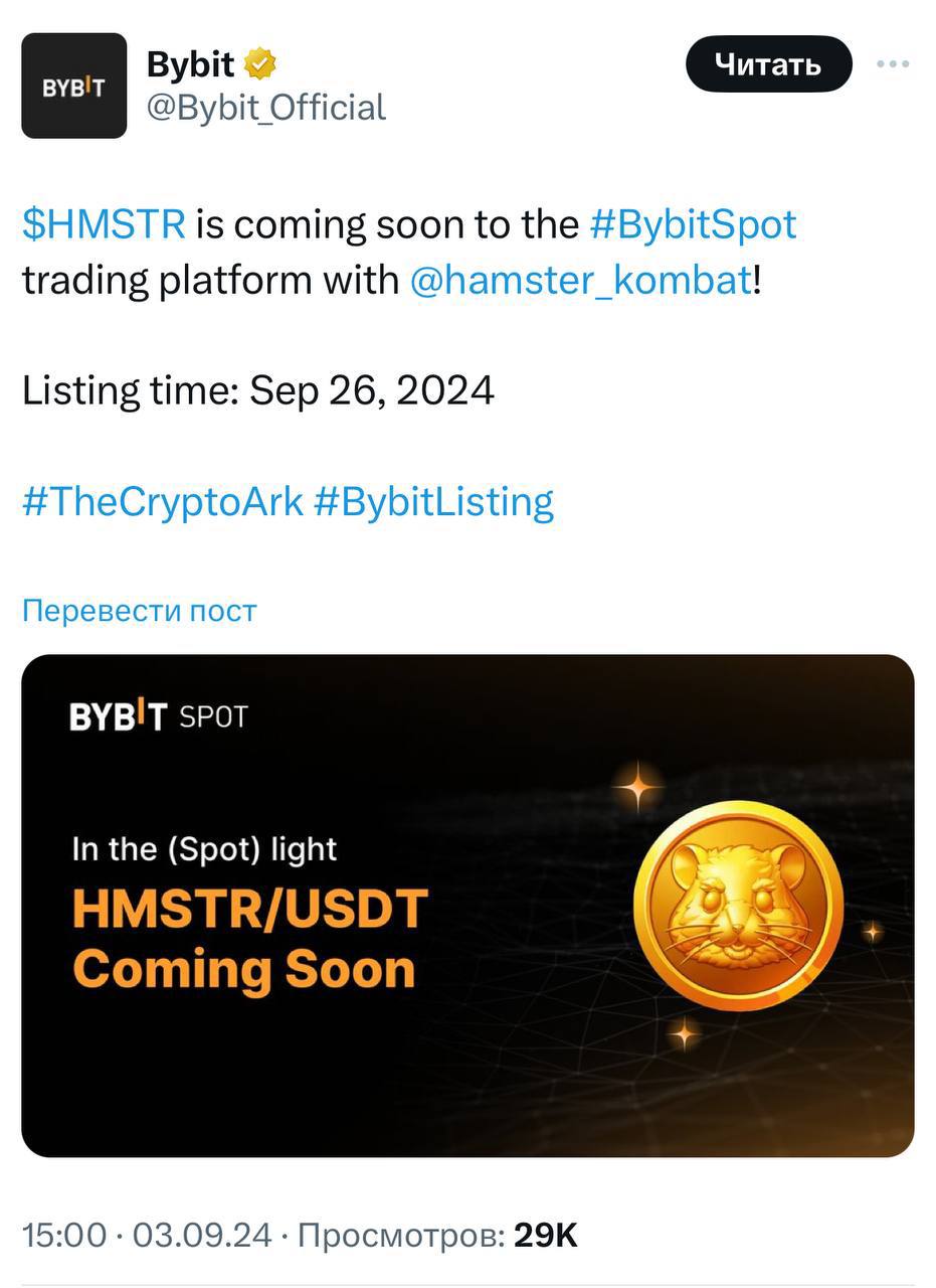 Криптовалюта также была добавлена в листинг таких бирж, как Bitget, BingX и Gate, что еще больше укрепило позиции «Хомяка» на рынке. Эксперты ожидают дальнейшего роста популярности и спроса на этот цифровой актив.
