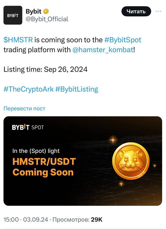 26 сентября криптовалюта, связанная с игрой «Хомяк», начнет одновременно торговаться на двух крупных криптовалютных биржах — Bybit и OKX. Этот шаг подтвердил растущий интерес к новому цифровому активу, который привлекает внимание трейдеров по всему миру.