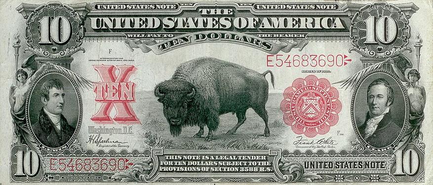 Эта визуальная схожесть якобы породила сленговое название sawbuck для десятки, а затем слово упростилось до buck и распространилось, как обозначение долларов вообще. Однако с точки зрения хронологии и лингвистики эта версия уступает более древнему и очевидному объяснению через buckskin.