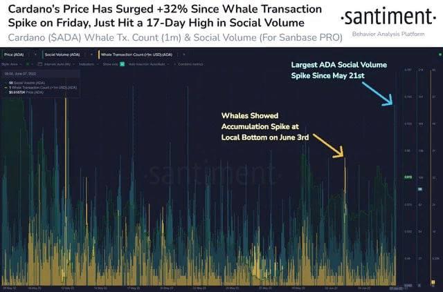 Также отмечается увеличение количества упоминаний криптовалюты в социальных сетях. Количество постов, которые посвящены Cardano, достигло максимума с 21 мая.
