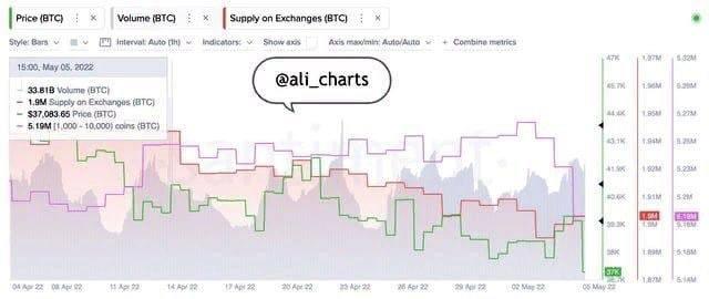 Аналитик Али Мартинес подтвердил, что владельцы биткоинов с кошельками от 1 000 до 10 000 BTC за три дня продали около 70 000 монет. Перед вчерашним обрушением курса было продано ещё 10 000 биткоинов. На тот момент биржевой баланс превысил 1,9 млн монет.