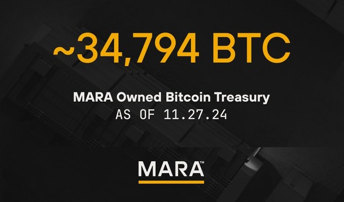27 ноября MARA Holdings пополнила свои резервы, купив 6474 BTC на сумму 618 миллионов долларов. Как сообщила пресс-служба компании, эта покупка стала возможной благодаря размещению конвертируемых облигаций на сумму 1 миллиард долларов. Средняя стоимость покупки составила 95 395 долларов за биткоин.