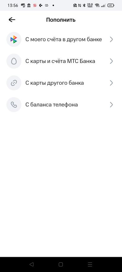 Делается это там же в мобильном приложении — достаточно выбрать какую-нибудь карту, например, нажать кнопку «Пополнить», выбрать пункт «С моего счета в другом банке», а далее выбрать конкретный банк.