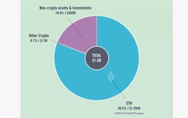 Из 1,3 миллиарда долларов 80,5% приходится на Ethereum, а это почти треть от общего предложения данной криптовалюты на рынке. Резервы используются для поддержки стартапов, которые улучшают экосистему Ethereum, а также для финансирования разработок.