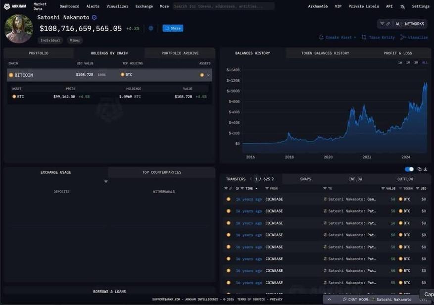 На криптовалютном кошельке, приписываемом создателю биткоина Сатоши Накамото, находятся средства на сумму более $108 миллиардов по текущему курсу криптовалюты.