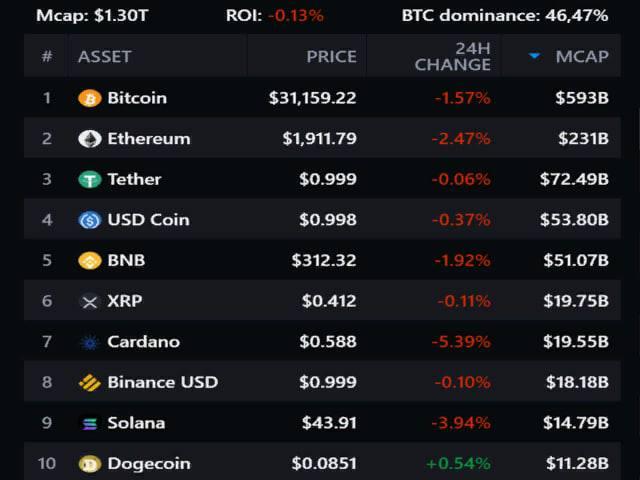В итоге по состоянию на 18:00 по московскому времени курс составил 31 159, а капитализация криптовалюты была равна 593 млрд долларов. Индекс доминирования биткоин немного вырос и составил 46,47%.