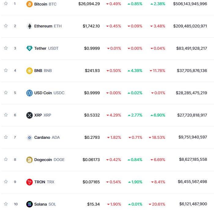Топ 10 криптовалют на 13 июля 2023: биткоин немного отыгрался