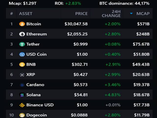 Сегодня вечером все криптовалюты в первой десятке укрепили свои позиции, в результате чего рынок вырос на 2,83% до 1,29 трлн долларов, а индекс доминирования биткоина был равен 44,17%.