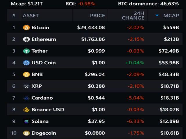 Solana в первой десятка потеряла больше остальных (-6,33) и подешевела до 37,95 долларов. Эфир и BNB подешевели на 2,15% и 2,09% соответственно до 1763 и 296 долларов соответственно. XRP, Cardano и Dogecoin подешевели до 0,388, 0,544 и 0,08 доллара.