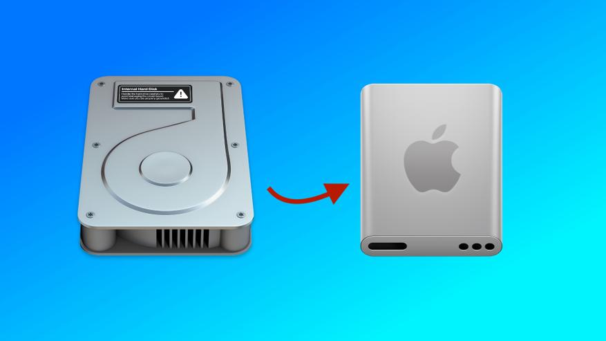Несмотря на то, что Apple начала переход на твердотельные накопители ещё в 2008 году с выпуском первого MacBook Air, а к началу 2010-х годов SSD стали стандартом в большинстве компьютеров Mac, иконка оставалась неизменной до текущего обновления. Последние компьютеры Mac с вращающимися жёсткими дисками — модели Intel iMac — были сняты с производства несколько лет назад.