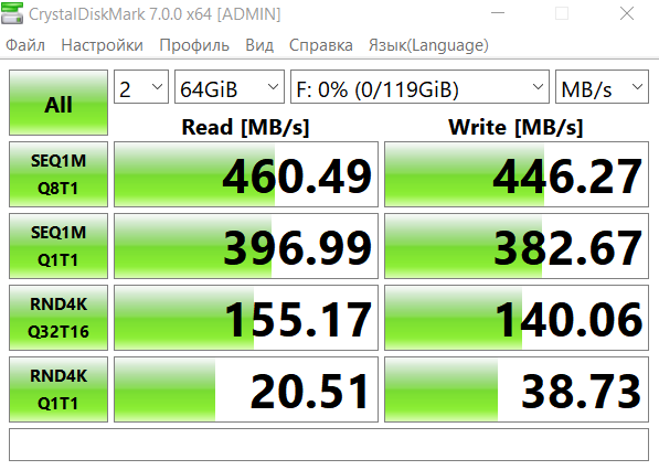 Утилита CrystalDiskMark показывает улучшение скорости доступа. Причем, как на чтение, так и на запись.