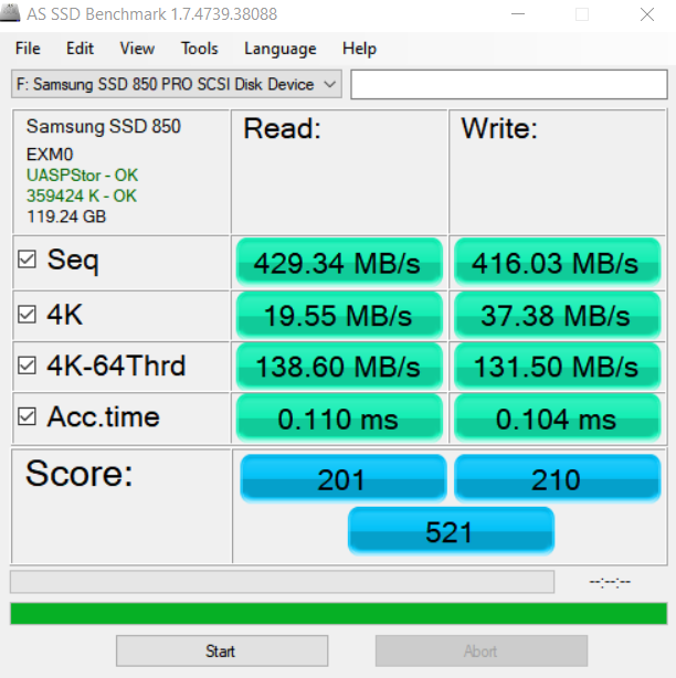 От объема блока скорости практически не зависят, особенно плохо с рандомным доступом.