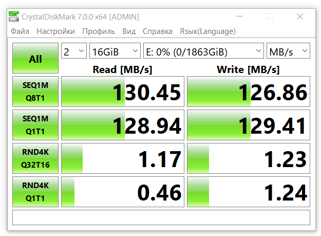 Тест скорости CrystalDiskMark с HDD Seagete показал весьма печальные параметры чтения и записи.