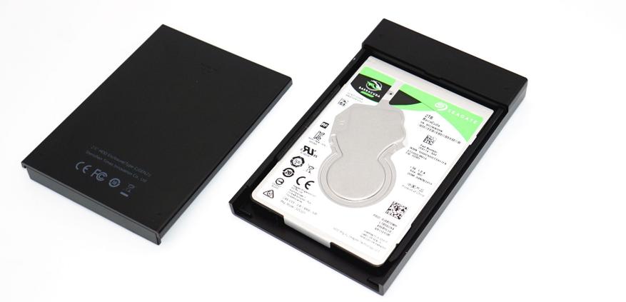 Для работы с кейсом подойдет любой HDD или SSD диск по размеру. Установить можно 2,5" HDD/SSD диски с толщиной 7 или 9,5 мм.