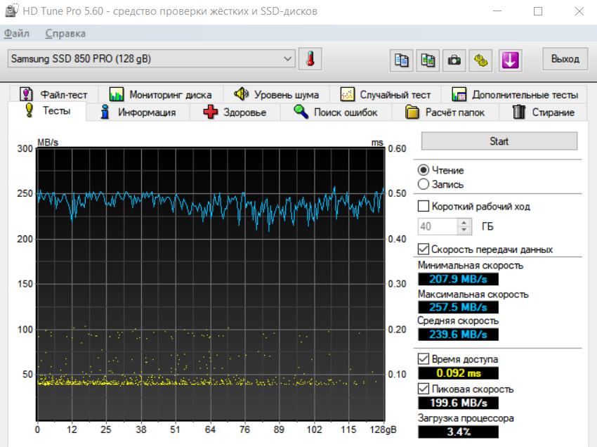 Утилита HD Tune показывает еще более медленный результат. Хорошо видно, что подобная конфигурация не подойдет для быстрого накопителя. Разве что неторопливо таскать фильмы на работу.