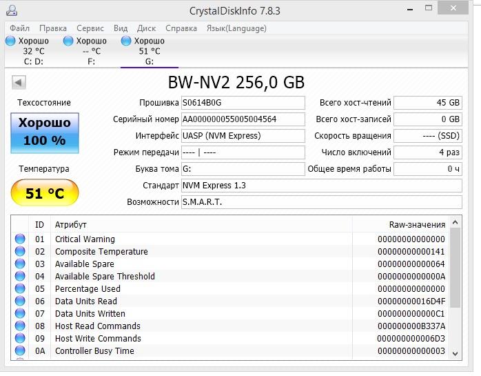 Отчет CrystalDiskInfo подтверждает версию NVMe — третье поколение.