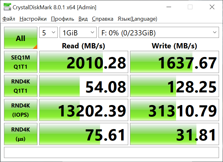 Тестирование скоростных характеристик Crucial SSD 250GB P5 M.2 NVMe осуществлялось на персональном компьютере следующей конфигурации: