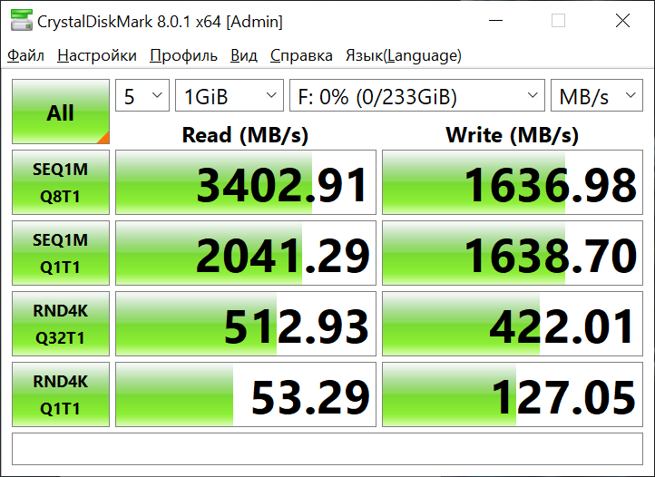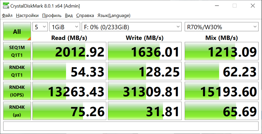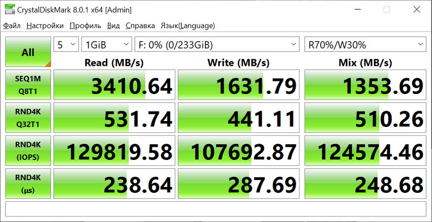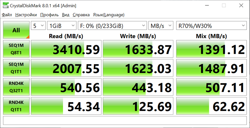 Утилита AS SSD Benchmark 2.0.7316.34247