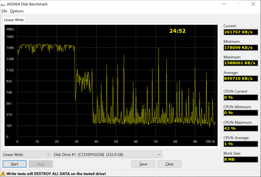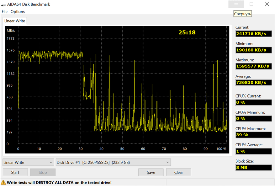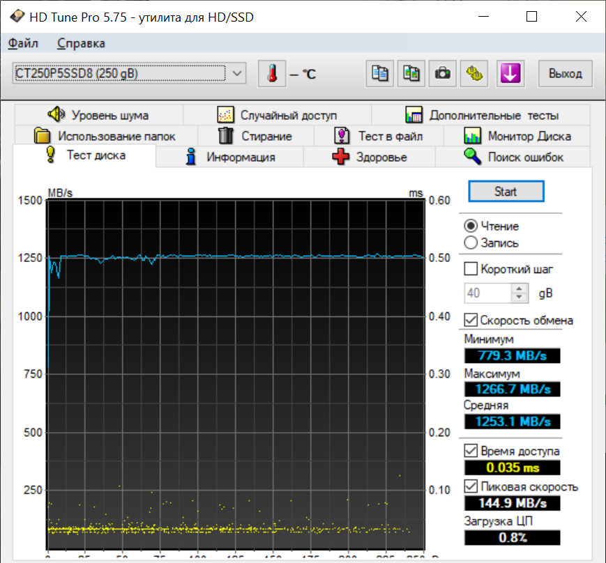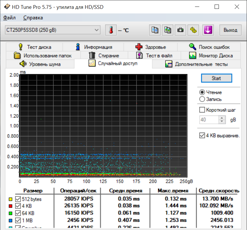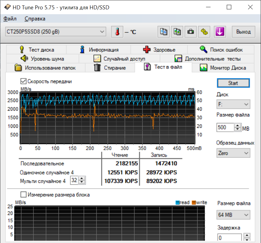 Тестирование накопителя происходило в несколько этапов. Вначале был запущен ряд специализированных утилит, предназначенных для оценки скоростных характеристик накопителя.