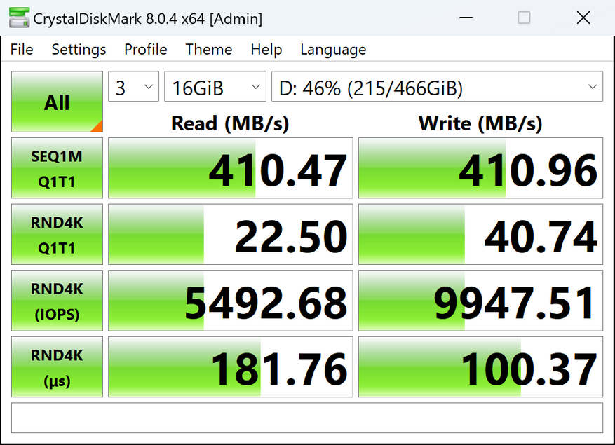 Вот здесь таковой USB Gen1. Было бы Gen2 т.е. какой-нибудь JMS580 — упёрлось бы в SATA.