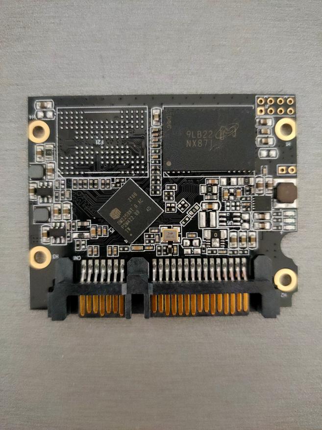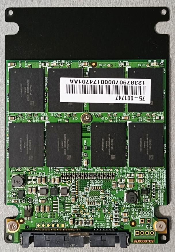 Действительно старые SSD таких фокусов не позволяют — у них обычно полноразмерные платы, густо усеянные микросхемами (нередко и с обеих сторон). Вот это, например, типичная зверушка на SandForce SF-2281, образца 2013 года. До сих пор живая, но с 2020 года практически не используется. Мной — поскольку нет проблем с более быстрыми и ёмкими устройствами под рукой, хоть внутренними, хоть внешними. Но их живых порядком, а снимаются с боевого дежурства по той же причине — мало сейчас 240 ГБ. Выкидывать — совсем жалко, поскольку когда-то за них платились серьёзные деньги. Для внешника может и пригодиться. Пусть и громоздкого, но, к примеру, стабильные 200-300 МБ/с при записи данных сейчас за 200 рублей точно не получишь. И за 1000 рублей — тоже. А дополнительный корпус здесь тоже не нужен — хватит и одного своего. Потому проще докупить «хвост».