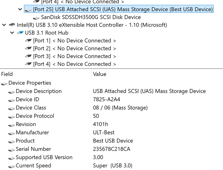 Самое смешное, что и диагностические средства по большому счёту спасовали. По идентификаторам нашлось упоминание «USB 3.0 to SATA cable PA023U3» в документации к Hard Disk Sentinel, причём в части неподдерживаемых мостов. По ULT-Best — некоторое количество подобных «хвостов» в продаже и жалобы на Reddit, что с их помощью не удаётся подключить десктопный хард. Даже и не знаю, что тут более вкусное — последнее или цена подобного «хвостика» на Newegg: если сравнить $23,58 со 163 рублями, то, похоже, отдыхает даже индекс бигмака.
