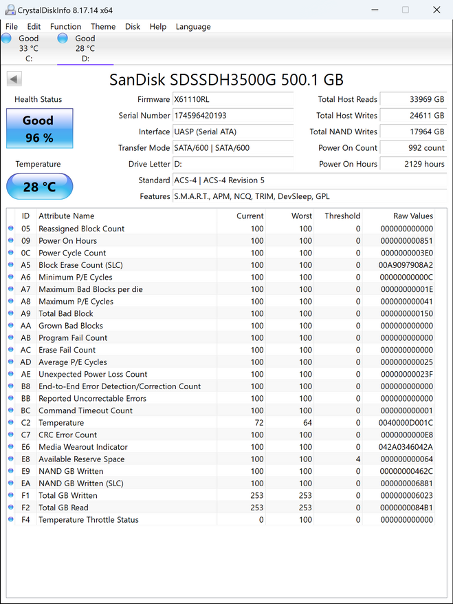 SMART виден. Работу TRIM я проверил — проблем нет. Сколько проживёт — сильно зависит от качества пайки, по-моему, но за такие деньги у меня больших претензий в любом случае не будет. У нас-то на местности аналогичная мелочёвка стоит раза в три дороже — хорошо хоть, не как в США :) И, повторюсь, для переделки старого SSD во внешний накопитель на мой взгляд подобные хвостики — не только самый дешёвый, но и самый удобный вариант. Дополнительный корпус им, в отличие от жёстких дисков, не нужен. Даже мешает — лишь увеличивая габариты. А они и без того несколько больше разумных — с чем можно примириться именно при наличии ненужного уже в ином качестве старого диска.