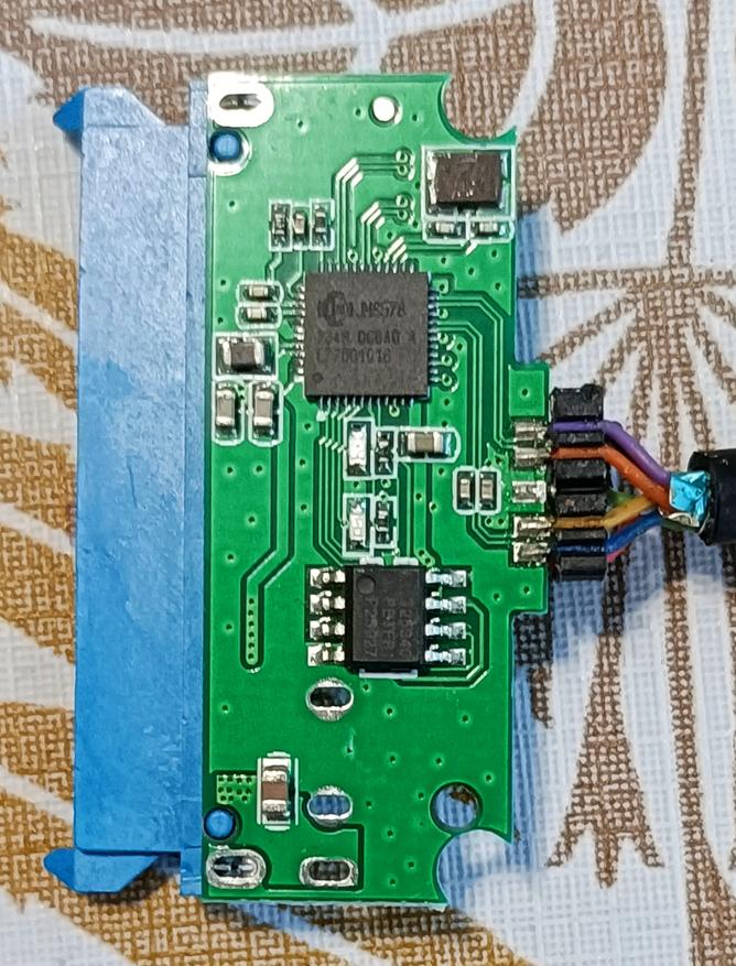 Вскрытие показало, что это просто перешитый JMicron JMS578, благо прошивки для мостов этого производителя много вольностей с идентификаторами позволяют.