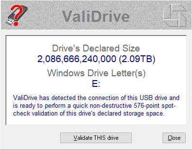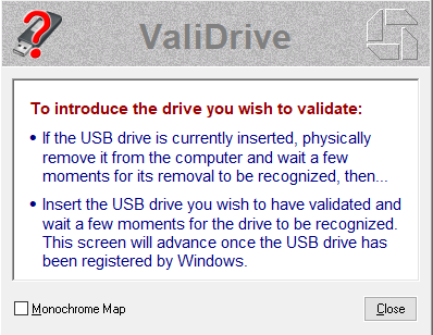 Далее, если флешка уже в вашем ПК, ее необходимо извлечь и подключить заново, ну, а если нет, то просто подключить в любой USB-разъем. Программа определит накопитель, который необходимо проверить, после требуется нажать «Validate THIS Drive».