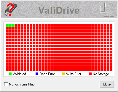 Проверка, если флешка пустая, произойдет очень быстро, и по ее окончании необходимо нажать «Close» после чего на экране вы увидите отчет по вашей флешке.