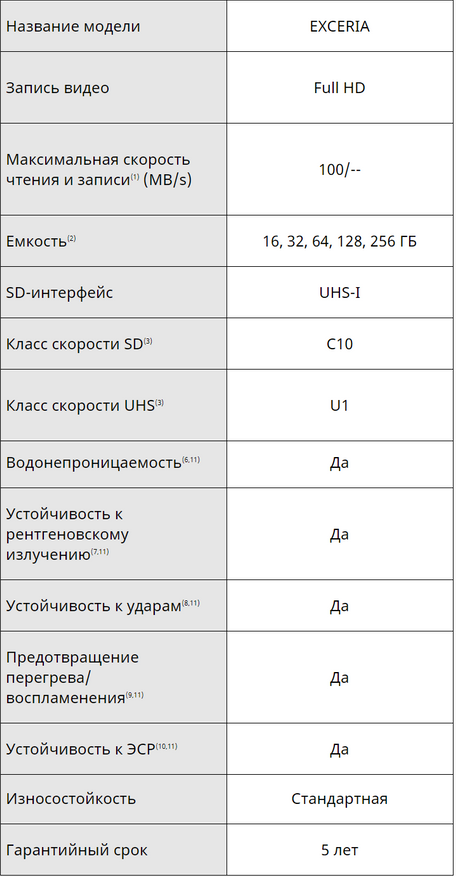 Производитель позиционирует карту памяти Kioxia Exceria SDXC UHS-I 256GB, как карту, предназначенную специально для работы с фотокамерами. Устройство отлично справляется с записью видеороликов в разрешении FullHD. Все карты памяти из линейки Exceria обеспечивают скорость чтения до 100 МБ/с. Информации о скорости записи данного устройства на упаковке нет.