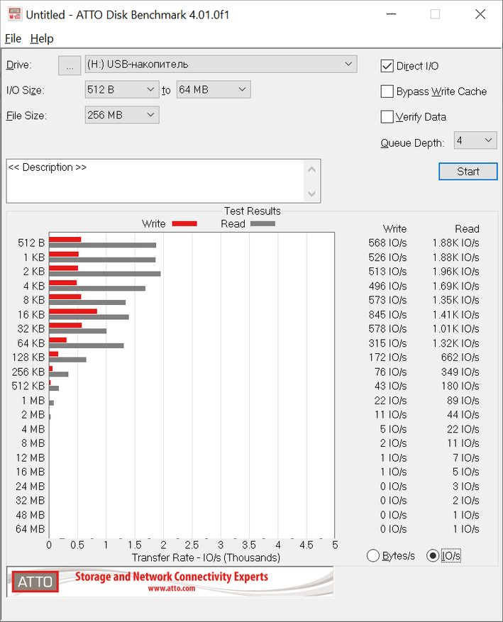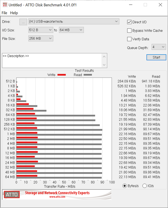 Тестирование при помощи утилиты ATTO Disk Benchmark 4.01.0f1