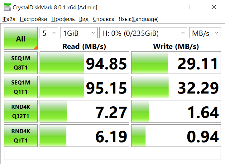 Тестирование при помощи утилиты CrystalDiskMark8.0.1