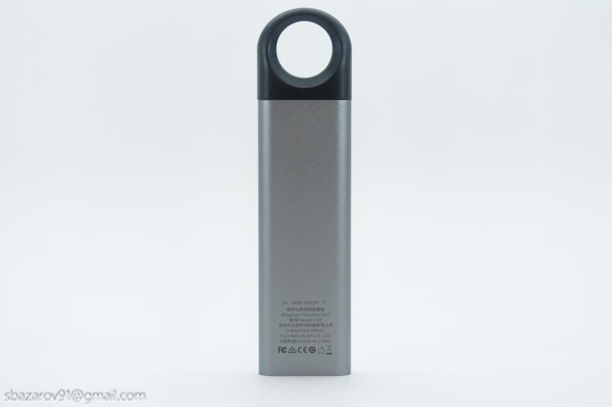 Портативный накопитель Orico C10 выполнен в алюминиевом корпусе с пластиковой проушиной. Дизайн не новый и использовался в предыдущей версии их накопителя GV100, который уже снят с продажи.