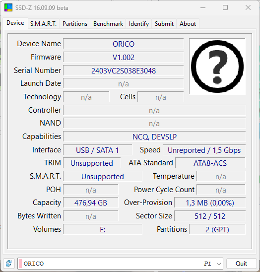 0) Стоит запустить CrystalDiskInfo. Посмотреть на вопрос смарта, например, К сожалению, автор давно впал в анабиоз, так что последние расширения не поддерживаются, но хоть что-то. Заодно позволяет предварительную сортировку провести по типу. Например, USB-UFS CDI не видит — такой отличительный признак. А дальше можно понять часто внутри SATA, NVMe или флэшечный контроллер. Ну и версию прошивки глянуть — часто позволяет определить контроллер. Просто по виду