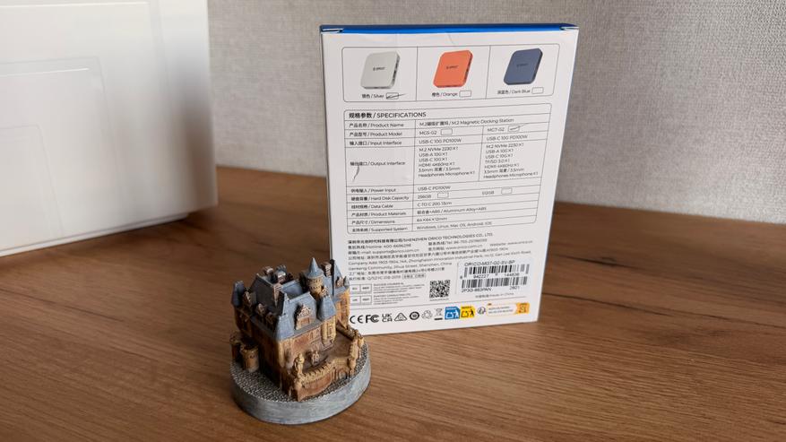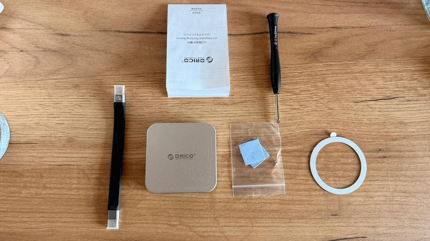 Приходит хаб в узнаваемой коробке с изображением внешнего вида товара и его параметров. В коробочке мы найдем все, чтобы сразу начать пользоваться устройствам. Тут есть сам хаб, термопрокладки, чтобы отводить тепло от SSD диска, дополнительное магнитное кольцо, чтобы использовать гаджет на устройствах без поддержки MagPro, кабель для передачи данных со скоростью до 20 Гбит/с, отвертка для доступу к m2 слоту.