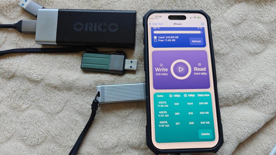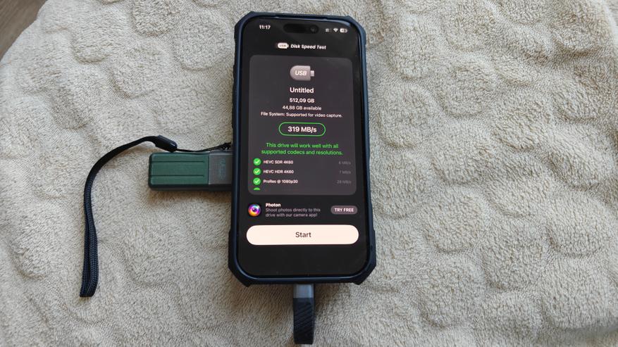 И достаточно просто вставить любую флешку. Проверено работает с флешками (по сути это SSD диски в формате USB флешек) размером до 1 ТБ. Скорость чтения ограничена только возможностями накопителя, на одной из флешек скорость на запись достигла 1044 МБ/с.