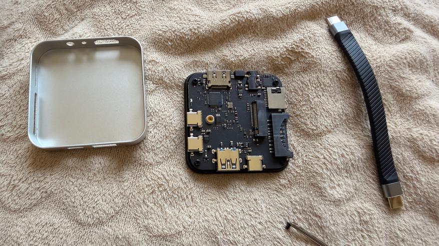 Для доступа к нему откручиваем винтик между mini Jack'ом и разъемом HDMI. Хаб легко открывается.