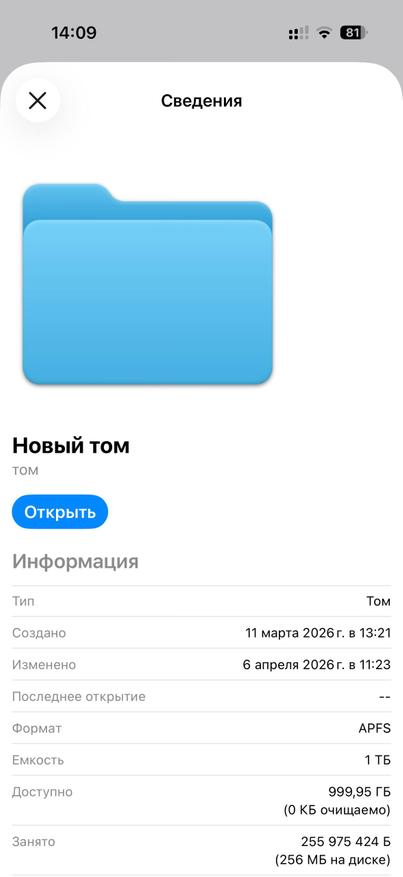 Также можно вставить в отсек m2 SSD накопитель. Определяется он моментально, как внешнее устройство. У меня был вариант до 1 TB. Нам открывается доступ к памяти на диске, что удобно для организации информации. Разумеется, можно сохранять все файлы на диск, чтобы не занимать память смартфона. Также моментально можно просматривать материал на смартфоне. К примеру скопировать видео с диска на айфон размером 1.5 ГБ заняло буквально пару секунд. Просмотр 1080 видео с флешки также идет без задержек.