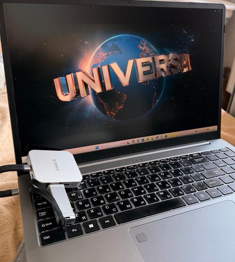Во время работы устройство нагревается до 52°С. Так что для использования в руке может показаться некомфортным, да и прокладки из комплекта лучше наклеить на установленный SSD накопитель. Разумеется, хаб можно использовать не только на айфон, но и на любом другом устройстве, например, на моем ноутбуке только один USB разъем, и он занят мышкой. Поэтому удобно вставить хаб В type-C разъем и скопировать нужные данные с флешек, карт и SSD диска. Можно также посмотреть фильм с внешнего накопителя, не копируя в память ноутбука. Так BD Remux образ фильма в mkv формате размером более 40 ГБ, воспроизводится без микрофризов.