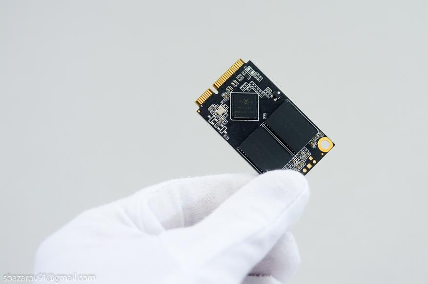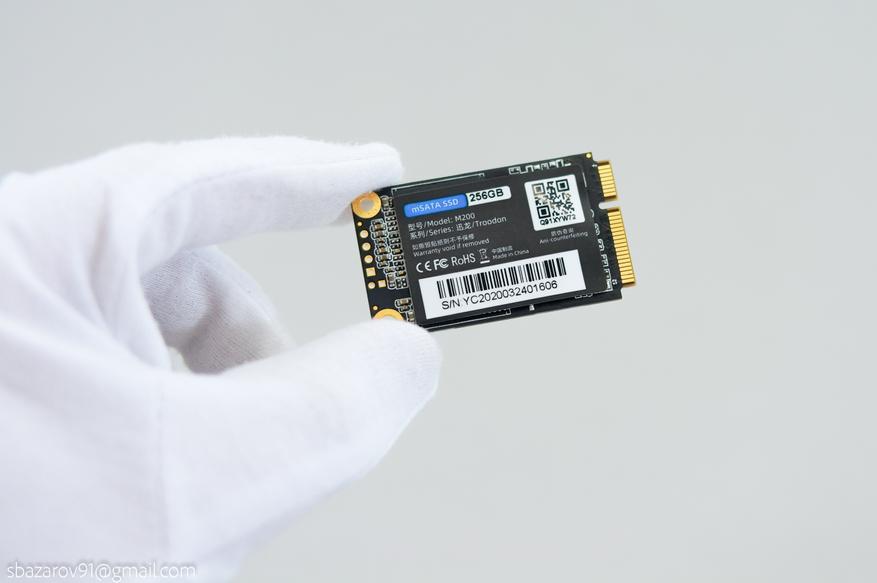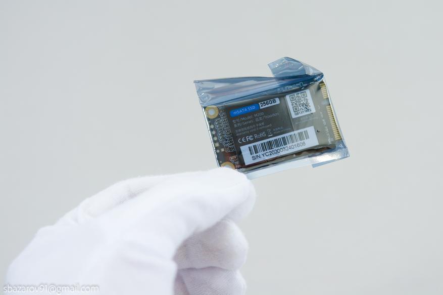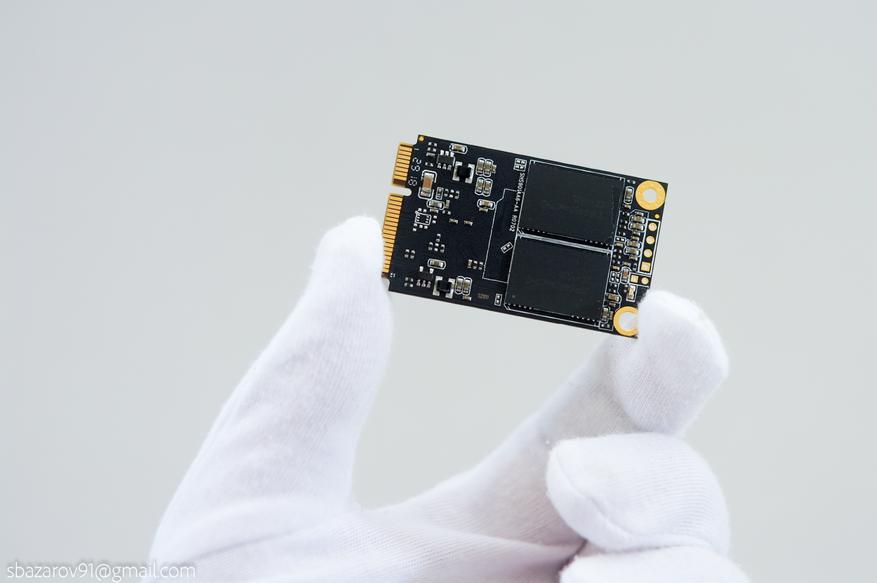 Внутри довольно компактный mSATA SSD в размерах 30*51*3.3мм. На обеих сторонах нанесены наклейки от производителя.