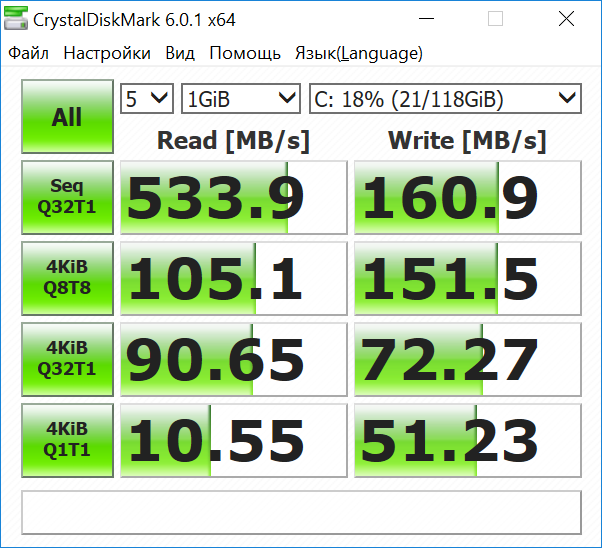 Запускаем ряд бенчмарков и прогоняем на линейное чтение и линейную запись.
