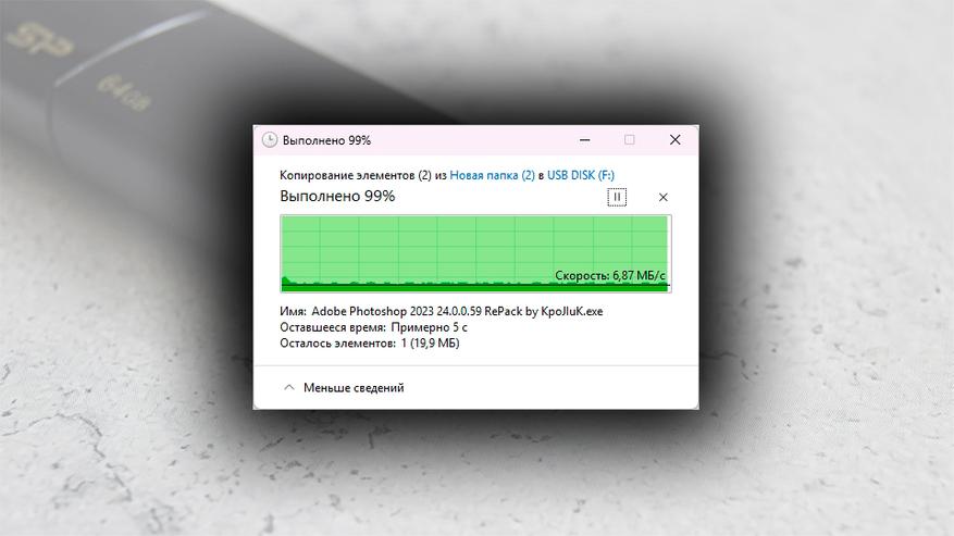 Однако, если ваши задачи подразумевают регулярную запись массивных пакетов информации, этот девайс может разочаровать, ведь фактическая скорость сохранения файлов составляет 7-11 МБ/с. Для подобных сценариев понадобится изрядная доля терпения.
