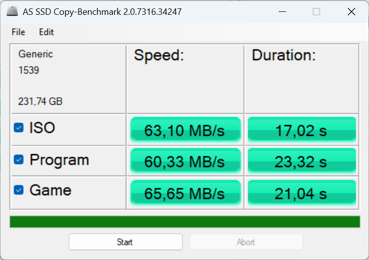 - ISO: ~63 МБ/с