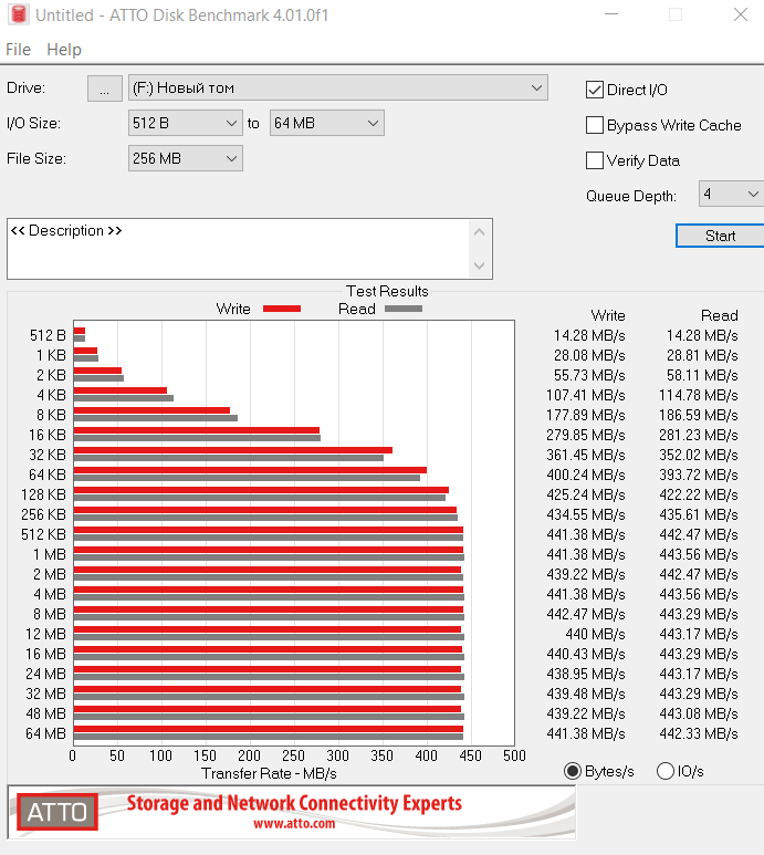 От объема блока скорости практически не зависят, особенно плохо с рандомным доступом.