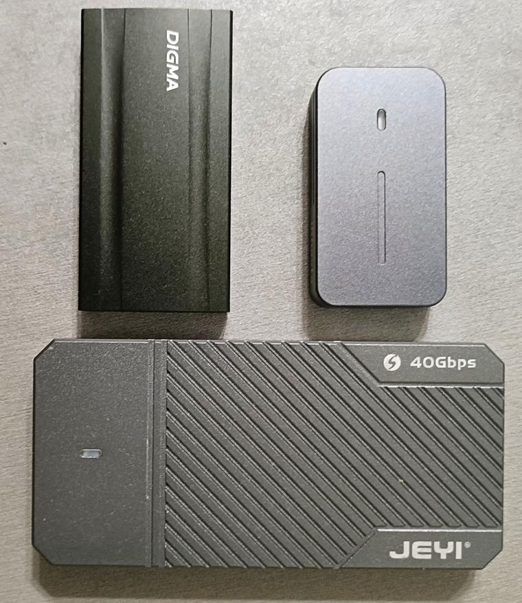 А вот тут уже ориентиры для сравнения совсем другие. Внешний накопитель на базе M.2 2230 может получиться и более компактным, однако выбор подходящих SSD ограничен — равно как их ёмкость, да и скорость тоже. И подавляющее большинство таких коробочек тоже рассчитаны на USB 3.2 Gen2, то есть лишь 10 Гбит/с. А потому для конкуренции с ними достаточно и компактной линейки устройств на SM2320. «Основная» же способна бросить вызов и полноразмерным внешним SSD — которые могут быть ещё более быстрыми и ёмкими, но… очень уж громоздкими. Плюс самостоятельная сборка подобных устройств многих по-прежнему пугает, а готовые модели такого уровня можно по пальцам пересчитать. Их же цены, к сожалению, такой скромностью не отличаются.